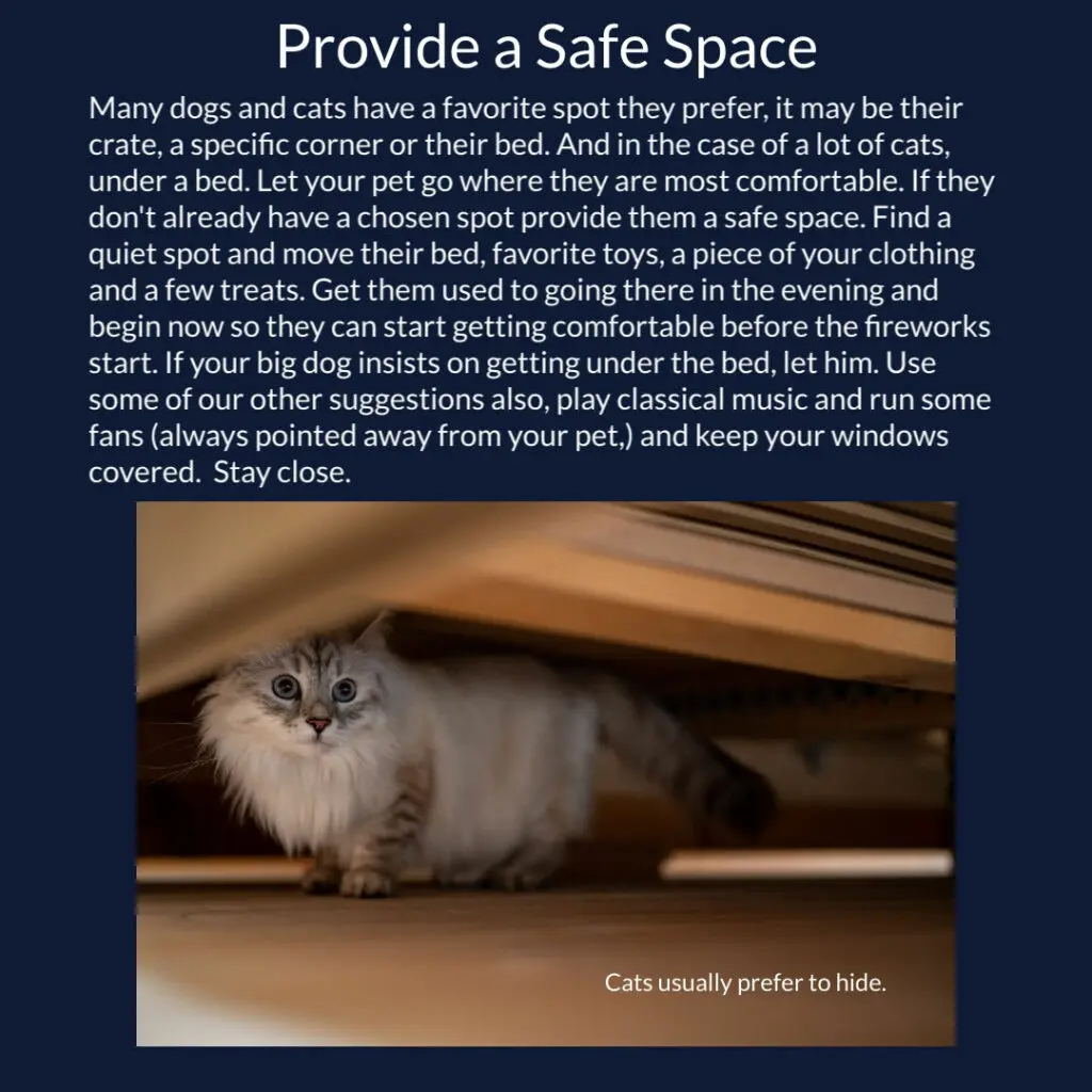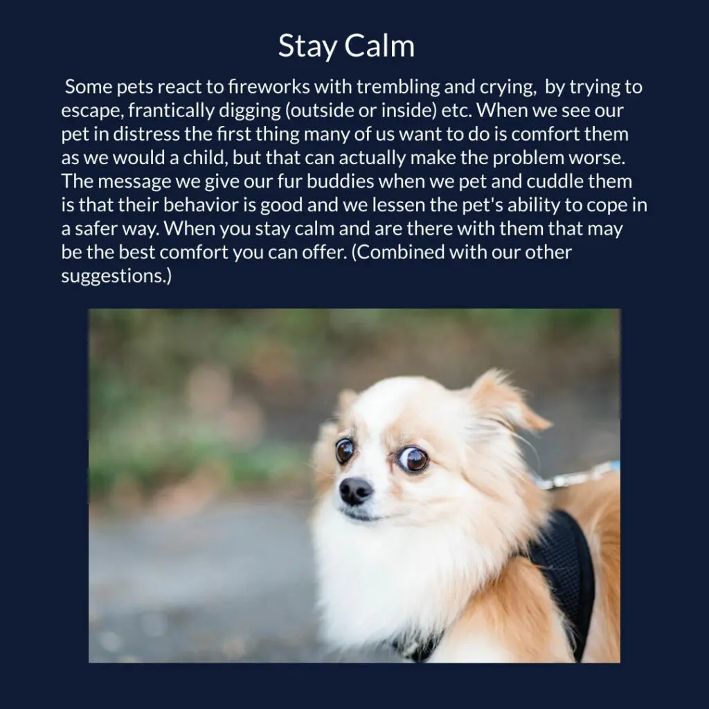 It is possible for you to help your pet have a less stressful experience this 4th of July and anytime they are exposed to fireworks the rest of the year. Please note that we said less stressful, not stress free. A pet who reacts in fear to the flash and bang of fireworks will respond to their circumstances with their fight or flight mechanisms triggered and in full force, but you can help them to survive and perhaps have an easier time of it than they would otherwise.